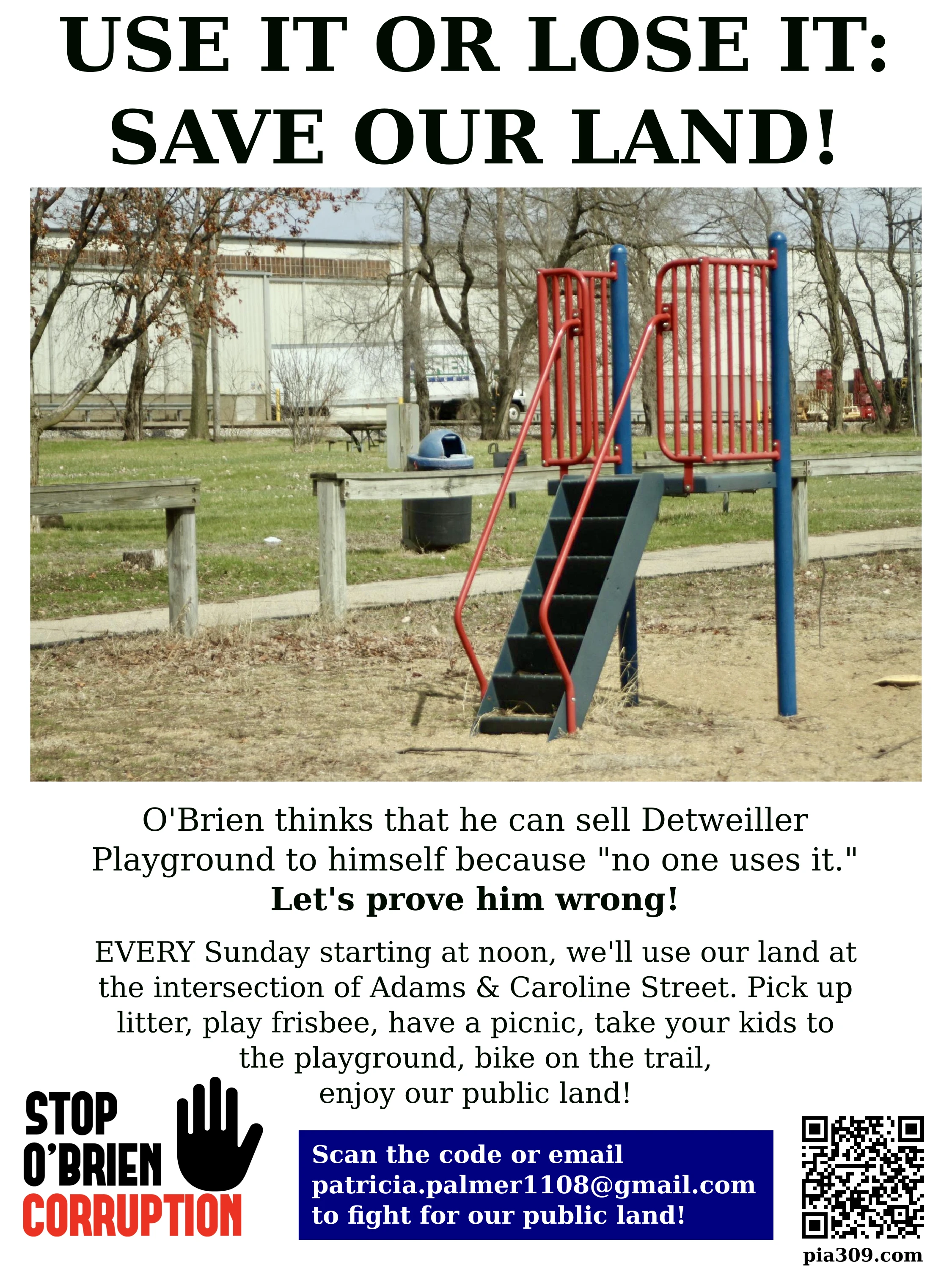 Email herold1961@gmail.com or patricia.palmer1108@gmail.com to help save Detweiller Playground!